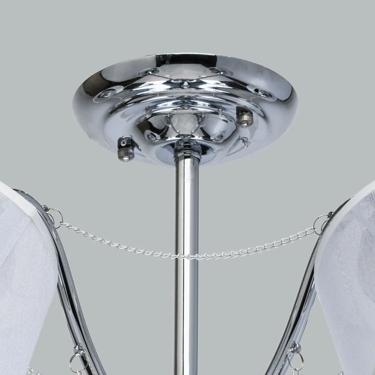 Основание/ металл/ хром. Абажуры/текстиль/ белый. Декор/ прозрачный хрусталь