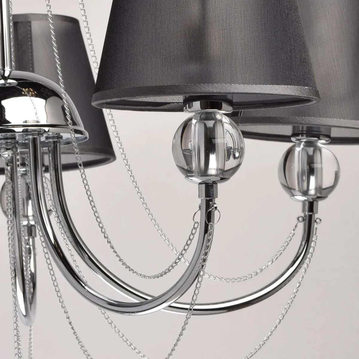 Металлическое основание цвета хрома. Плафоны - органза. Декор - хрусталь